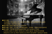 ■ 참가 부문: [전공부문] - 피아노(솔로, 반주, 듀엣), 관현악, 성악, 작곡, 중창(10인 이하), 실내악 [비전공부문] - 전공 부문과 동일 ■ 접수 마감: 2025년 12월 12일 (금) 18:00까지 ■ 대회 장소: 서초아트센터 (서울시 서초구 효령로 349-5 비본데이즈빌딩 지하1층) ■ 참가 대상: 전공 - 유·초등·중·고등·대학(원)·일반부 비전공 - 전공부문과 동일 + 실버부문(만 58 - 65세 이하) ■ 참 가 곡: 자유곡 (전공생 경우 2곡 연주 가능) ※작곡: 이메일 접수 ※피아노 반주: 기악 반주 (소나타, 2개 악장), 성악 반주 (가곡 2곡, 언어 무관) ※피아노 듀엣: 1 Piano 4 Hands ■ 혜 택: 1. 참가자 전원 1) 심사 평가지 2) 기념품 3) 연주 영상 4) 신문사 주관 국내외 마스터 클래스 지원 시 20% 장학 혜택 5) 신문사 주관 국내외 리사이틀 지원 시 20% 장학 혜택 2. 수상자 ※ 참가자 혜택 (기본) 1) 상패 (대상/금상) 2) 상장 (모든 수상자) 3) 대한민국예술신문 인터뷰 기사 송출 (희망 시) 3. 우수 수상자 1) 해외 초청 연주회 (홀: 일본 후쿠오카 FCH) (희망자에 한함)